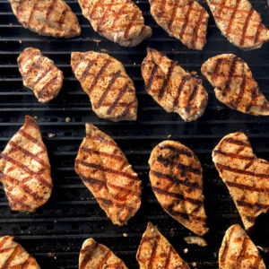 • Lift, twist and flip every few minutes until your pieces reach an internal temp of 165°F and don’t let them go much longer than that. Remember that boneless skinless breasts get GORGEOUS sear marks on GrillGrates so be strategic with your flips. If your chicken is stickin’ you’re moving it too much!