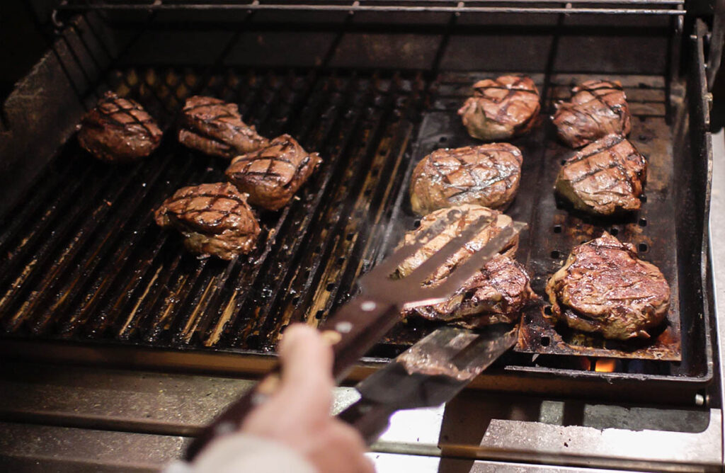 For Christmas Day Dinner we grilled up filet mignon. We bought two nicely trimmed tenderloins from Costco and I cut them into filets and steaked up the tail section and grilled it all. No leftovers save a few trimmings which the dogs enjoyed. I cut the center of the tenderloin into relatively thick filets and used the “Ruth Chris” kiss technique to deliver that extra sear and sizzle. I’ve been buying extra thick filets just so I can grill them on all sides followed by a hot sear using the flat side of the GrillGrates. I use the Ruth Chris kiss most of the time I grill steaks and burgers. To me it delivers the perfect sear and amps up the grilled flavor a lot.