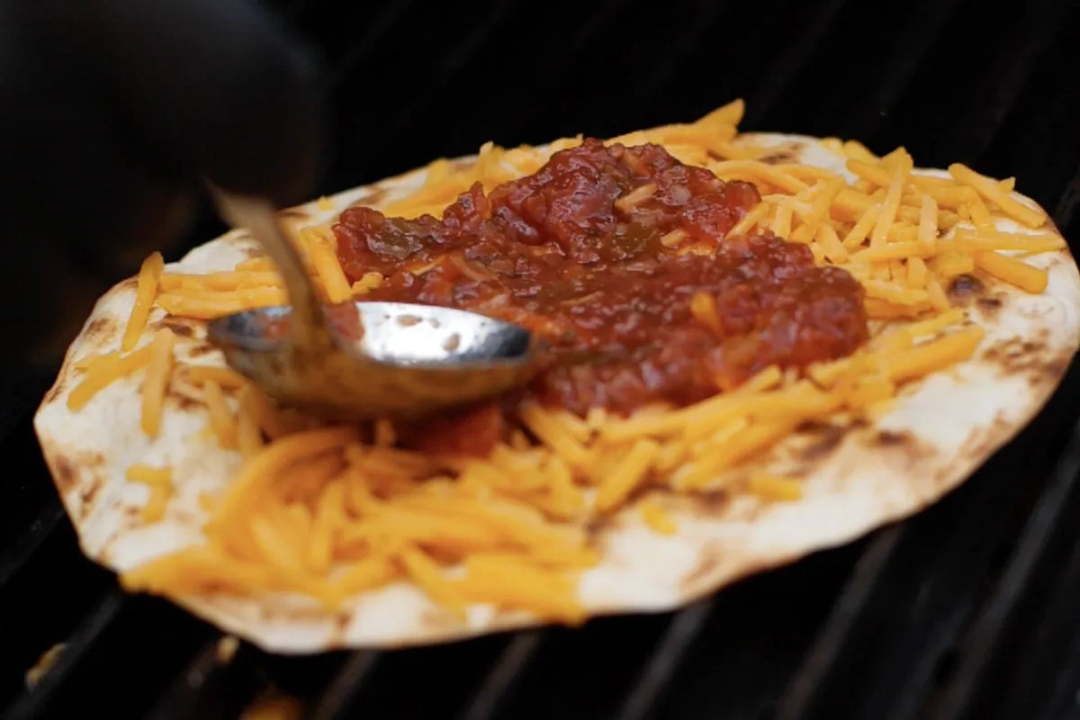 Below, two of our favorites. On the left, our buddy Dave from Next With Dave on YouTube fills the grill with his crowd-pleasing Hamburger Bean Dip & Party Wings 4 Ways. We love the variety of flavors sure to please all palettes at your party. On the right, probably the easiest thing to grill up for game day are quesadillas. The best thing about these is they can be as simplistic (just cheese) or as complex (chicken, black bean, veggies, etc.) as you want to make them.