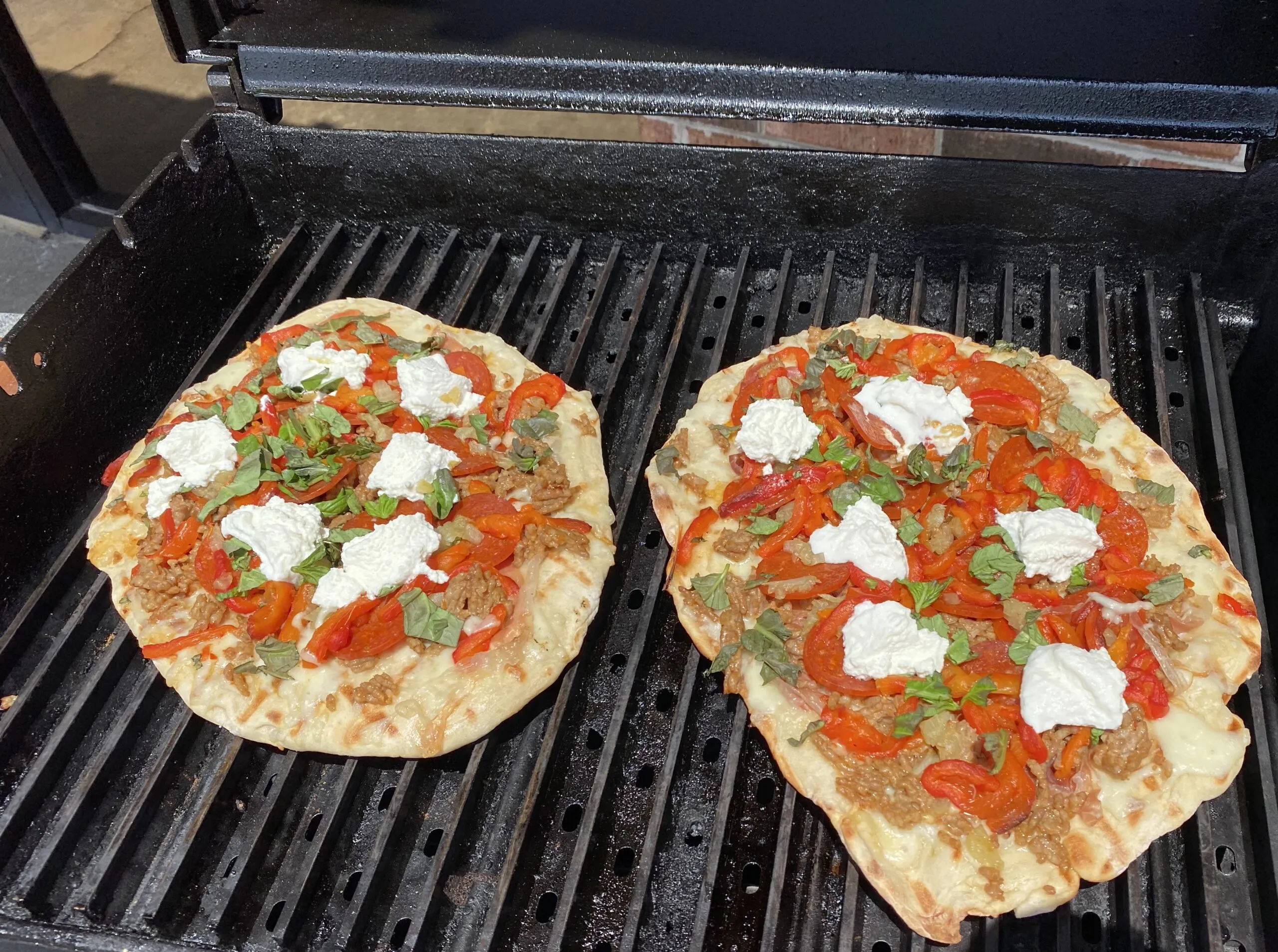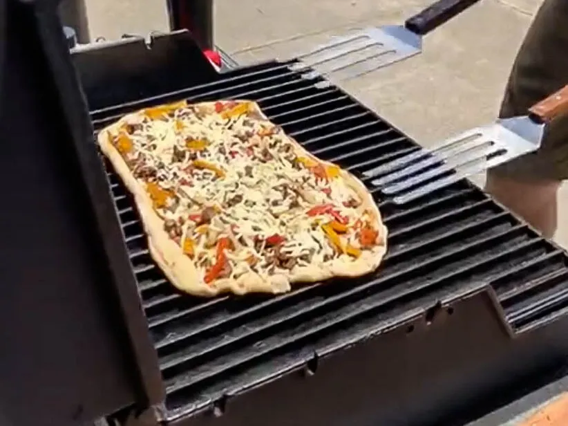 - On the Left: In a time crunch? Grab a frozen pizza and throw it on the grill. Believe it or not the grill can make even frozen pizza taste better.