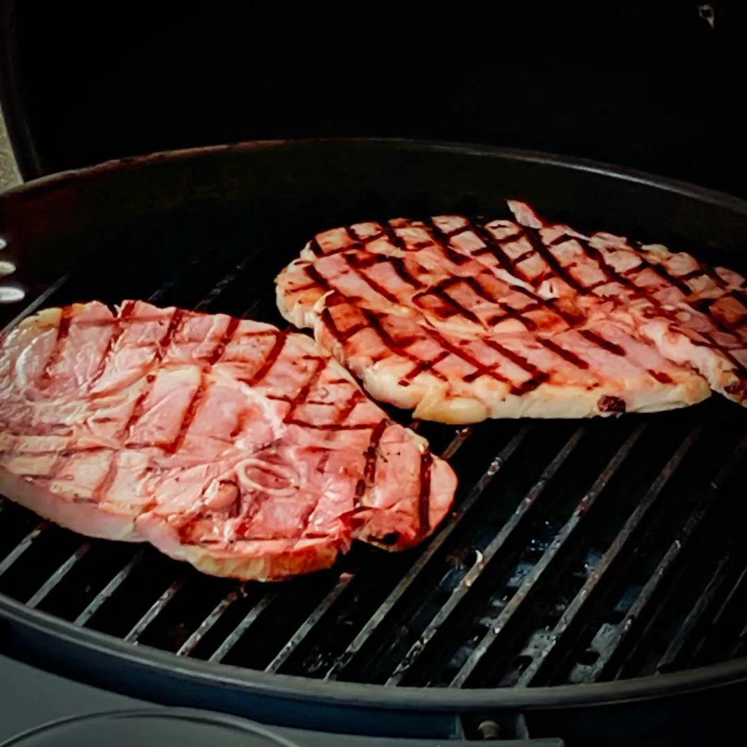 - Ham steaks – grill on rail side up for wonderful flavor and beautiful marks