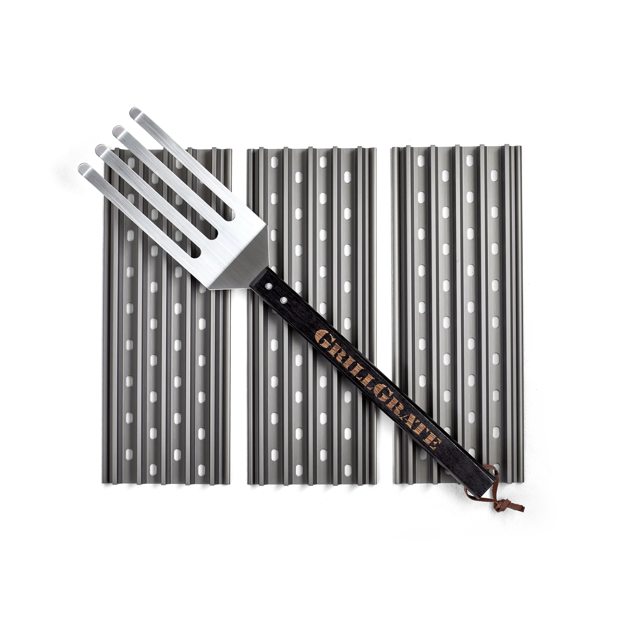 GrillGrates eliminate flare-ups and excessive charring for better, faster cooks. How? The raised rails trap and conduct heat, while the valleys sizzle juices for added flavor, moisture and tenderness. This is a perfect recipe for control and flexibility - not to mention bold sear marks and a great sizzle every time!