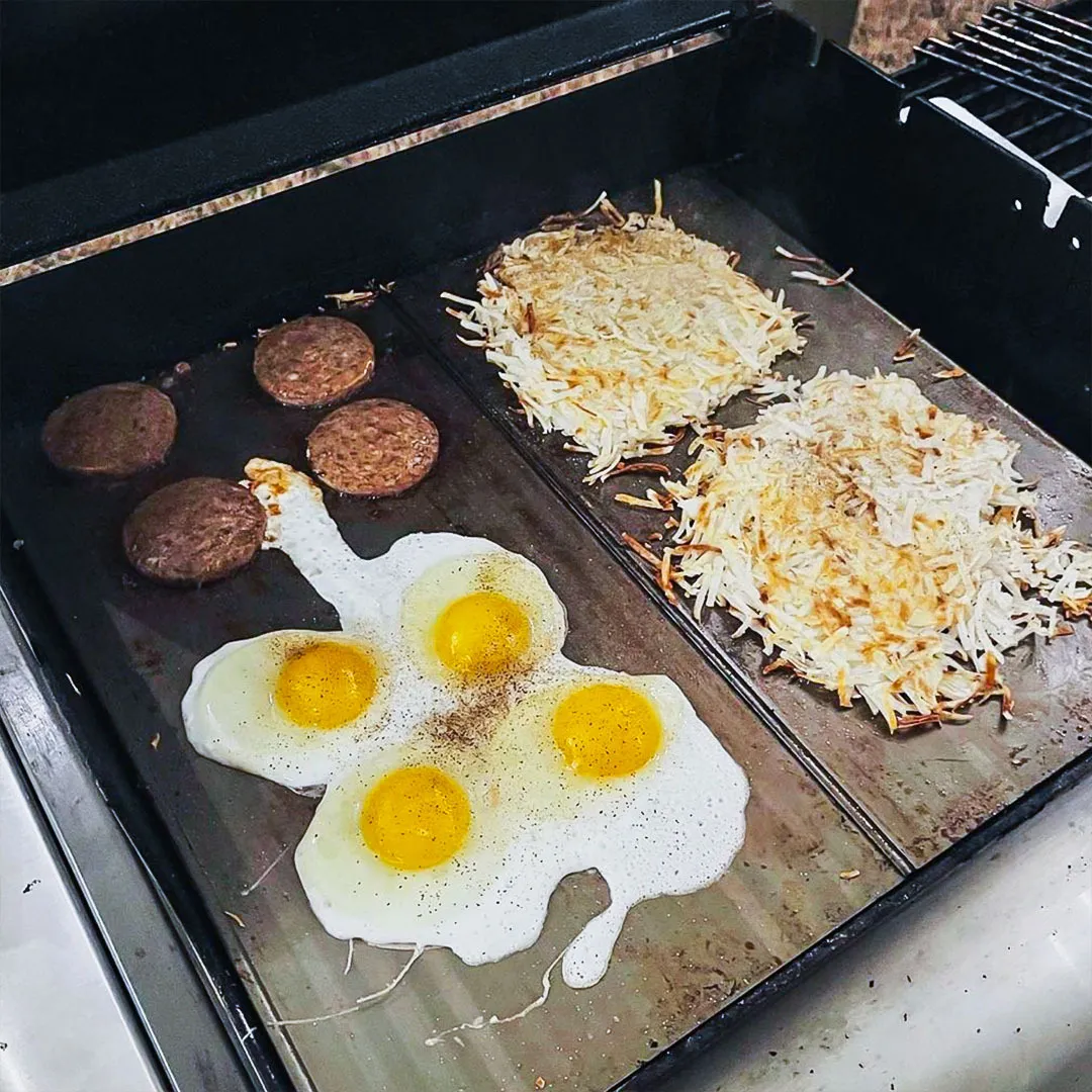 With the addition of the GrillGrate Griddle to our family of products you now have the ability to cook virtually anything on your grill or oven. Perfect for searing steaks and fish, does wonders for vegetables and even cooks breakfast on your grill. Bacon and eggs are a delight. GrillGrate Griddle works really well in the oven too!