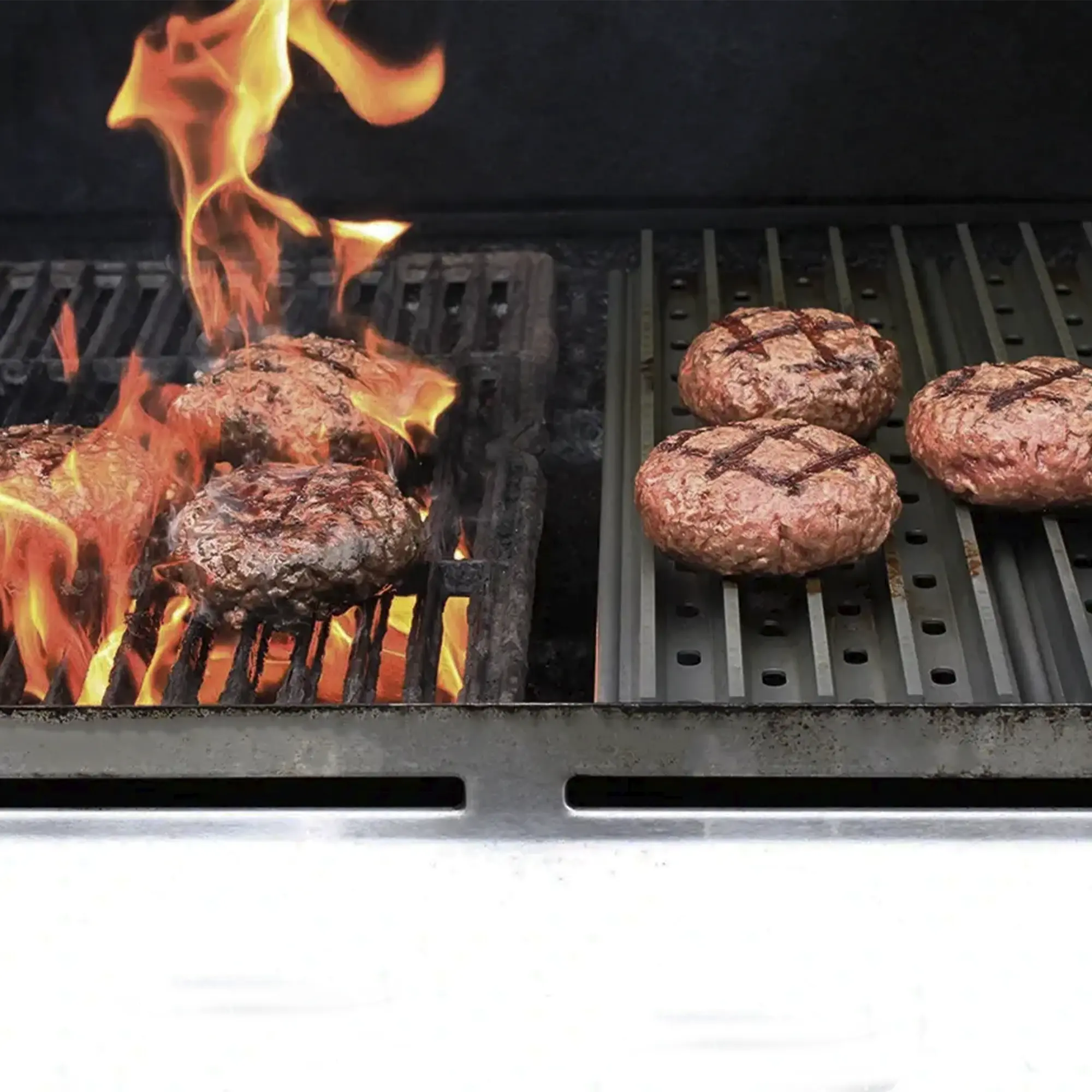 Your Grill, But Better. As opposed to traditional grill surfaces that merely hold the food above the heat source, GrillGrates concentrate heat through the patented raised rail design cooking food faster and more evenly. GrillGrate’s air flow vents and flat side work together to trap grease, prevent charring, and block those pesky flare-ups that tend to engulf and dry out food. When we say better, juicier food every time – we mean it! It is central to the innovative design of this grate. The sizzling-hot valleys vaporize drippings and juices, retaining moisture and enhancing flavor.