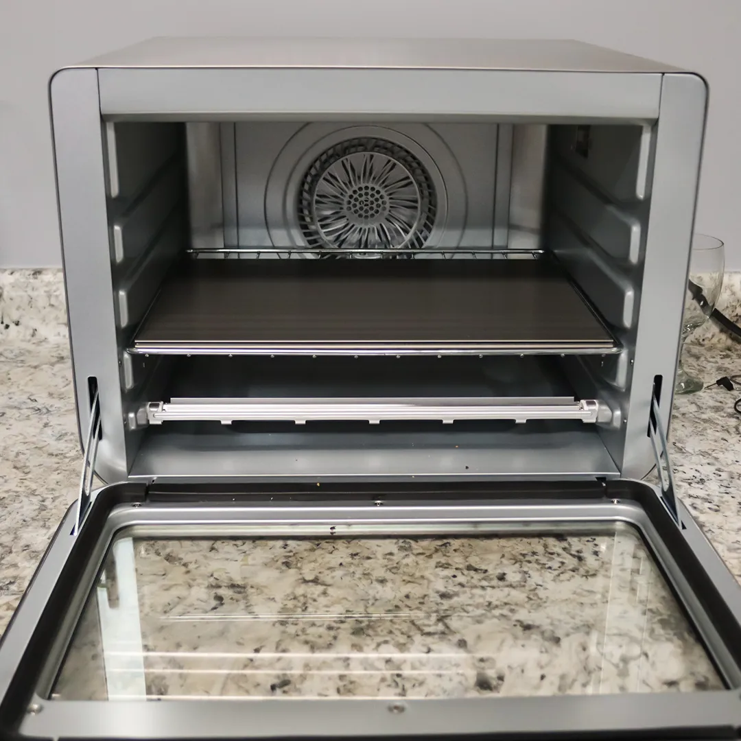For the Ninja Foodi Oven and other smart oven owners whose inside width is 13.75”. This product slides on the shelf and does not require a tray below.