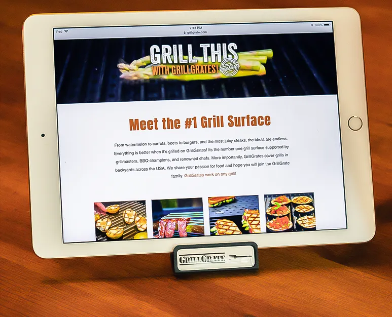 GrillGrate phone and tablet holder, works with virtually any phone or tablet. Hold your phone while you view recipes, watch videos, and more!