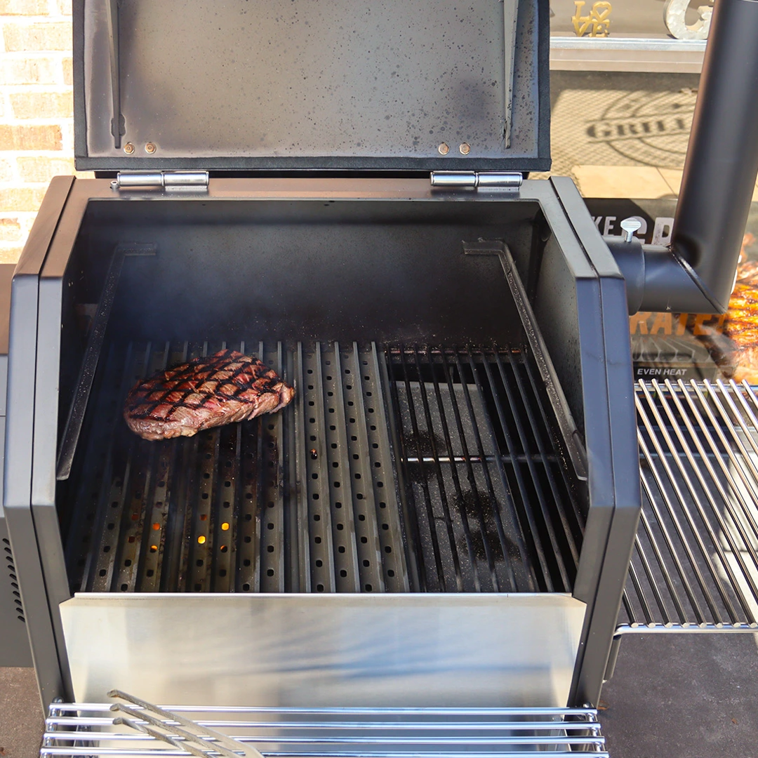 Please note: Pellet Grill sear stations do not provide full grill coverage in order to allow ample airflow. In testing, we have found that with too many GrillGrate panels, heat can get trapped. When this happens, the fan in the pellet grill turn off, which ultimately turns off the grill.