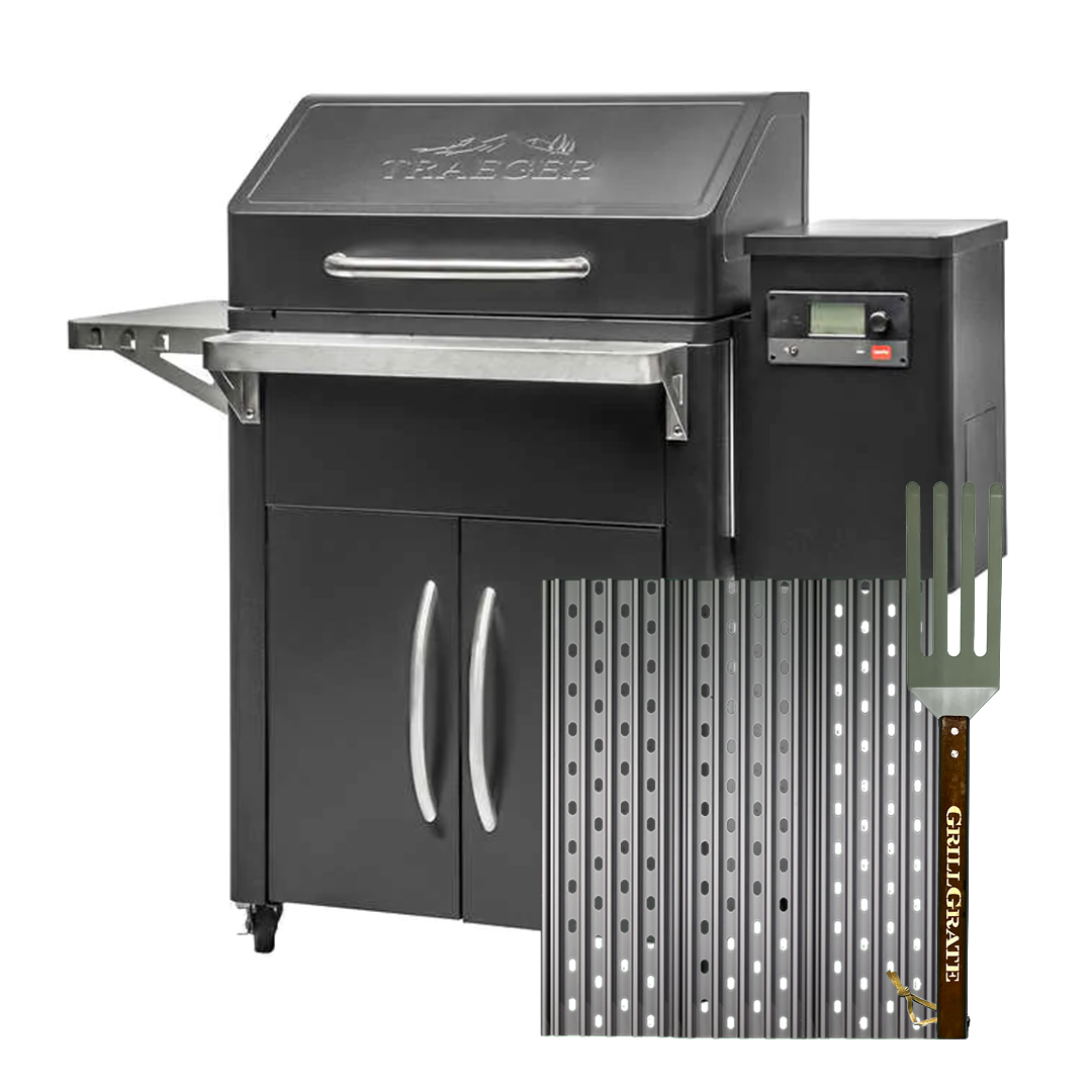We call them “sear stations” for a reason; GrillGrates turn pellet smokers into pellet grills. They trap and concentrate heat and conduct it up the rails for great searing while the valleys sizzle juices for added flavor. GrillGrates typically add 100 degrees or more at the grate surface on pellet grills. Every set comes with a GrateTool which is part fork, part spatula that fits between the rails to get under your food and lift it without scraping. Here’s how: