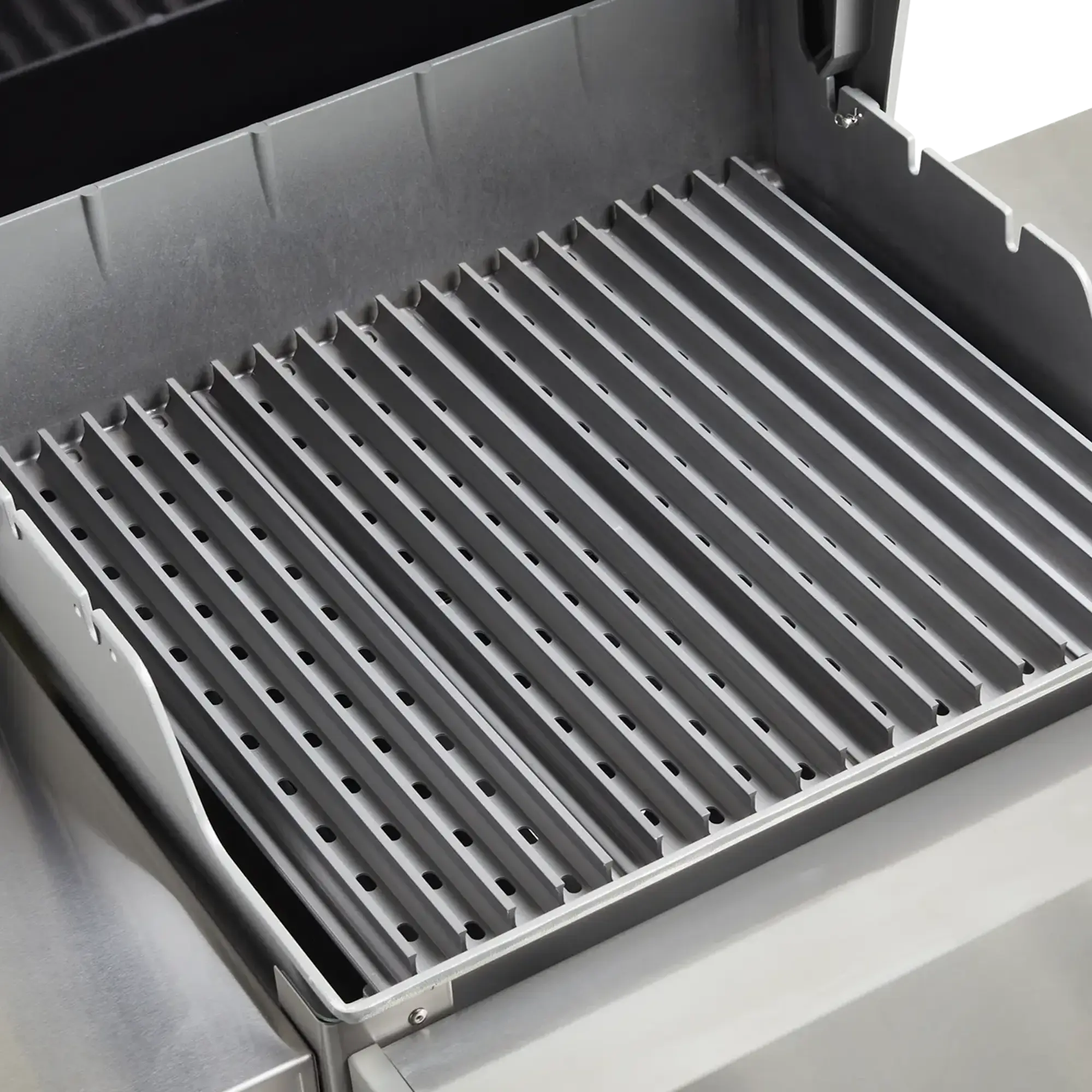 Made from anodized aluminum, these grates will never rust out. When properly seasoned, they are non-stick and easy to clean.