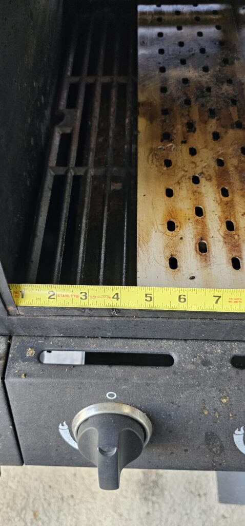 Close . . . For the Oklahoma Long Horn, you will lose a few inches of cooking area. It lacks about 3″-4″ from filling the cooking area. But, I’m hoping it allows me to better use the “more” of the grill by evening out the cooking area. So, I guess I can live with the small size.
