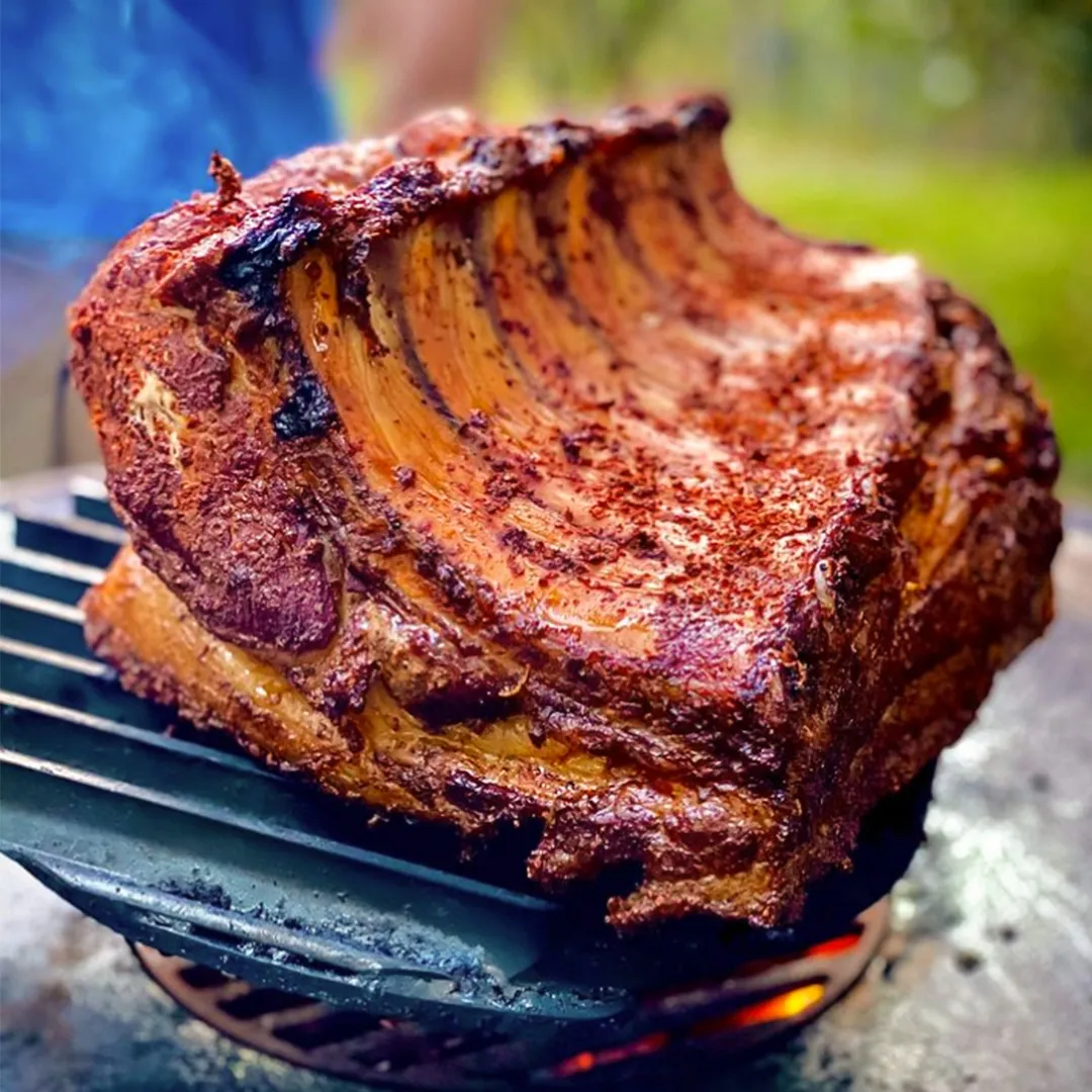 Using the Tribal Fire adjustable handle in combination with GrillGrate’s innovative cooking grate design, we have made the ultimate steak grilling experience. With GrillGrate’s 14.5″ kettle grill surface, you can get the perfect sear on your ribeye or any other protein. Lower it to the center opening to increase the heat of the GrillGrate and then adjust it up and away for finishing. Perfect for SCA competitions.