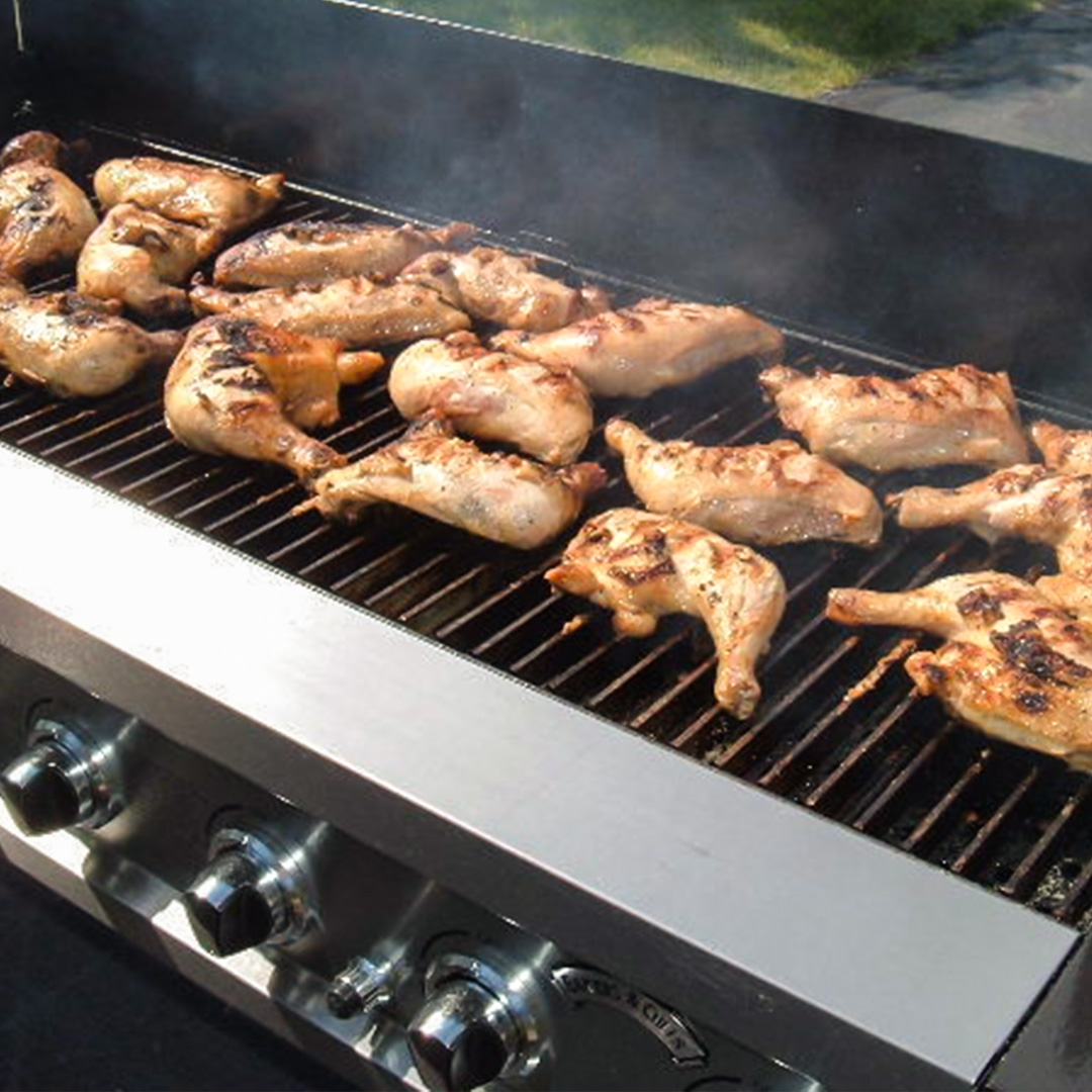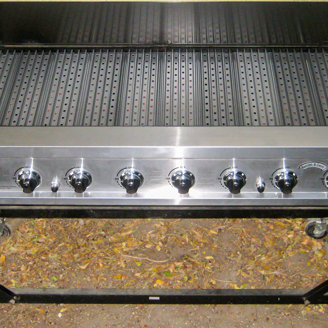 The most common event grills are 8- burner, two-tank models from companies such as Bakers & Chefs and Royal Gourmet, among others. Ten 18.5″ GrillGrate panels work perfectly as a drop-in replacement. They’ll pay for themselves in the first few cooks in fuel savings!