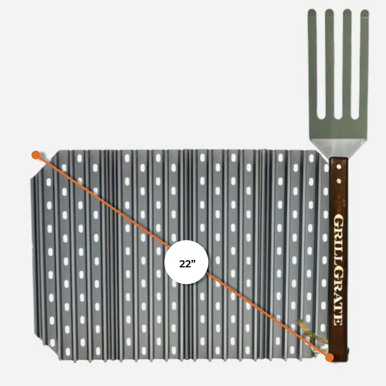 GrillGrates make your charcoal grill perform its best - and then push it to be even better. How? Control and flexibility. GrillGrates act as a flame shield, so you can finally do direct grilling at higher temperatures without fear of flames or charring. Lay our hard anodized aluminum interlocking grates on top of your existing grill surface, season them up, and experience better, more consistent cooks on your charcoal grill. The raised rail design of our grates concentrates heat and keeps the juices sizzling with the food via unique valleys - all without feeding the flames or charring your food.