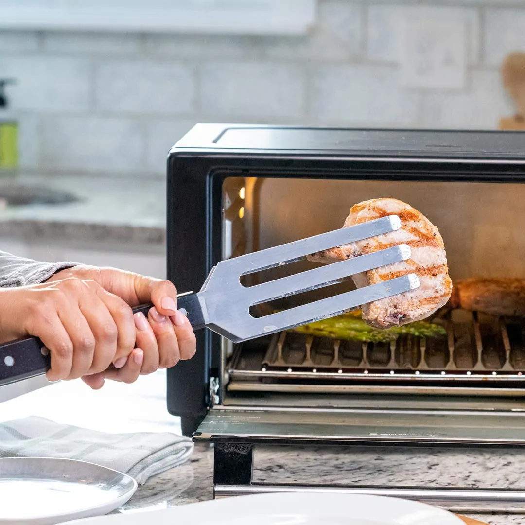 The Grate Tool is part fork, part spatula that fits between the rails to get under your food and lift it without scraping.