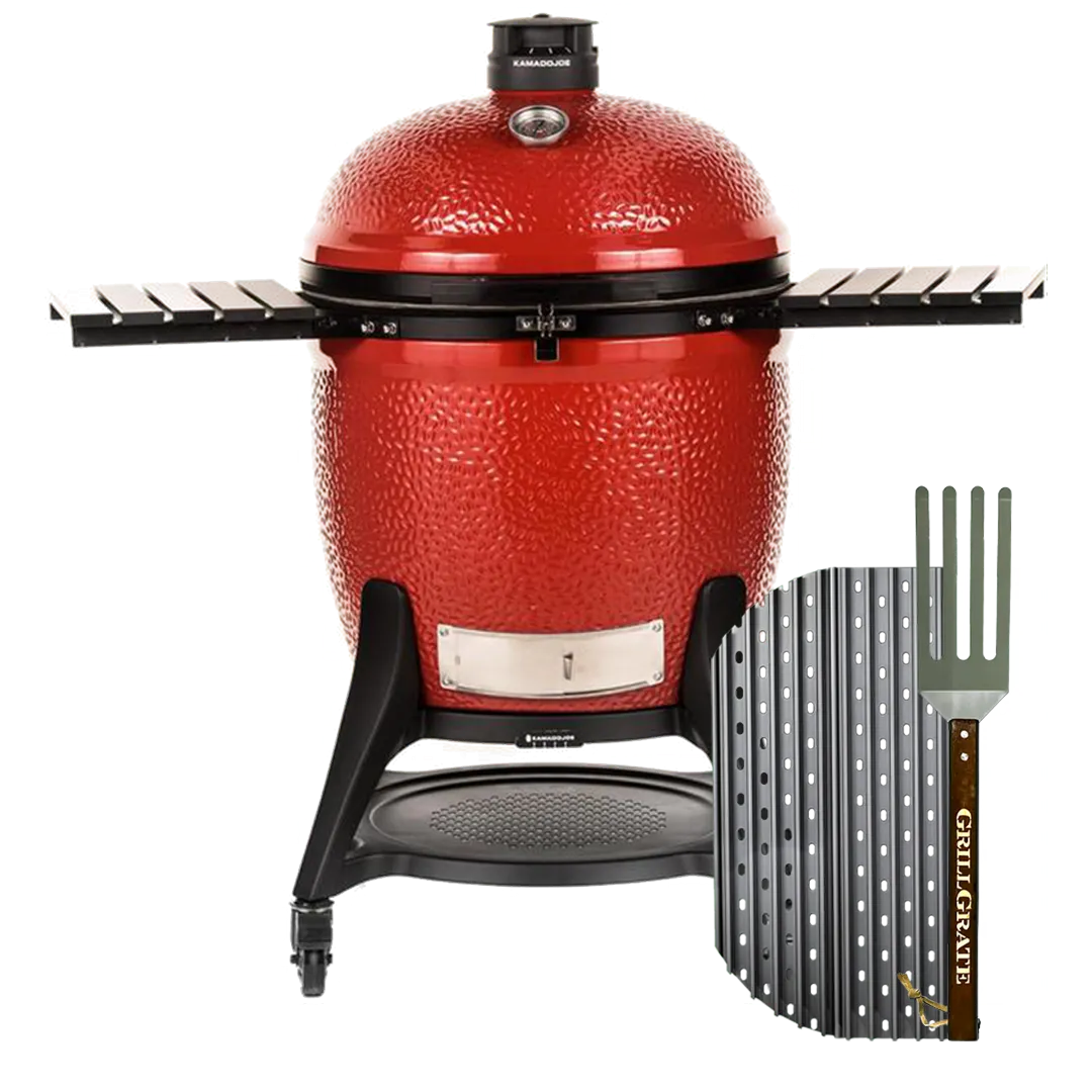 I have a full set to GrillGrate for my gas grill and some GrillGrate Griddles which are first class. I’m not so happy with the Kamado Joe grate having to sit on top of the existing grills. It slides around when you are working with the food as there is no way to lock it down. If the outside edge was 1/2 inch longer I feel it would fit better.