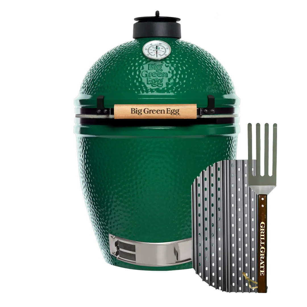 GrillGrates are your secret weapon for easy, stress-free and fun kamado grilling. More control and flexibility are two reasons why kamado grillers call GrillGrates an essential accessory for GrillMasters. Reversible, interlocking panels sit on top of your existing grates, acting as a flame shield to allow for protected, direct grilling at higher temperatures. The non-stick hard anodized aluminum grates even out hot and cold spots, help you gain control of your entire cooking surface, and produce juicier, more flavorful food. See our top techniques for making the best of these features here.