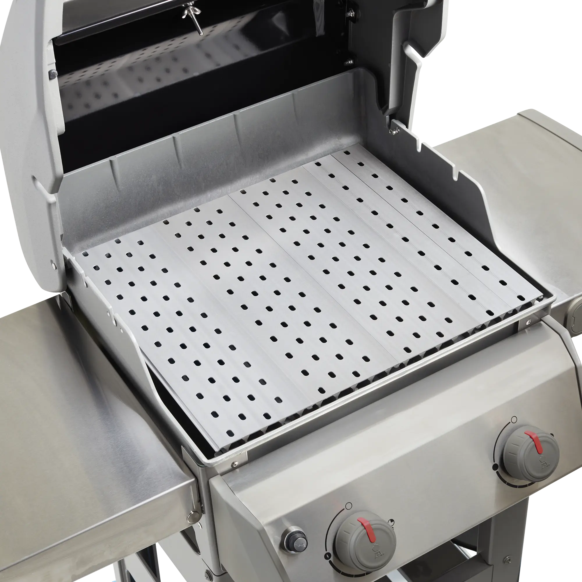 Never burn a steak again. The flame shield eliminates flare-ups. And the raised rails deliver the perfect sear.