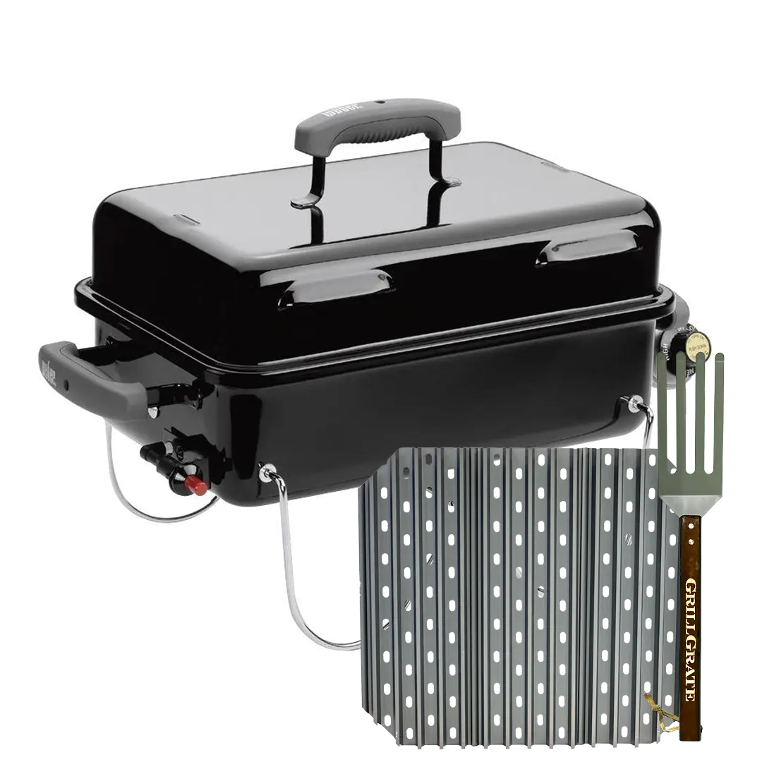 I just bought a weber go anywhere to cook for my wife and I since it’s just us at our house most of the time. I have 3 other weber kettles but they’re all overkill for a simple short cook for supper. The go anywhere gets it done with just 20 or 30 coals. I knew I had to have a set of GrillGrates for it because the set I have on my big Kettle are the best thing ever. No flare ups, hotter more even cook temps and easy to clean. Love the shorter spatula too! I highly recommend GrillGrates for any grill you may have. You just can’t go wrong!