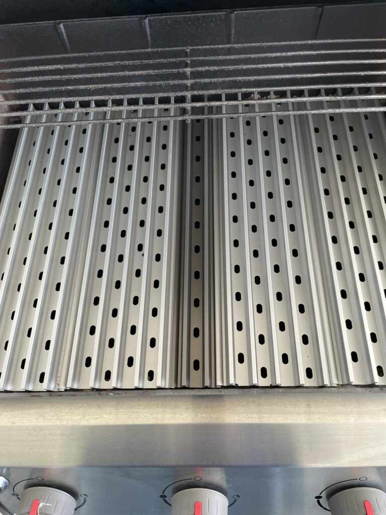 PLEASE NOTE: If using this set on a new model Spirit, you will experience about a 2″ gap. We recommend either centering the set to have a slight gap on either side or separating your grates in the middle for two-zone grilling.