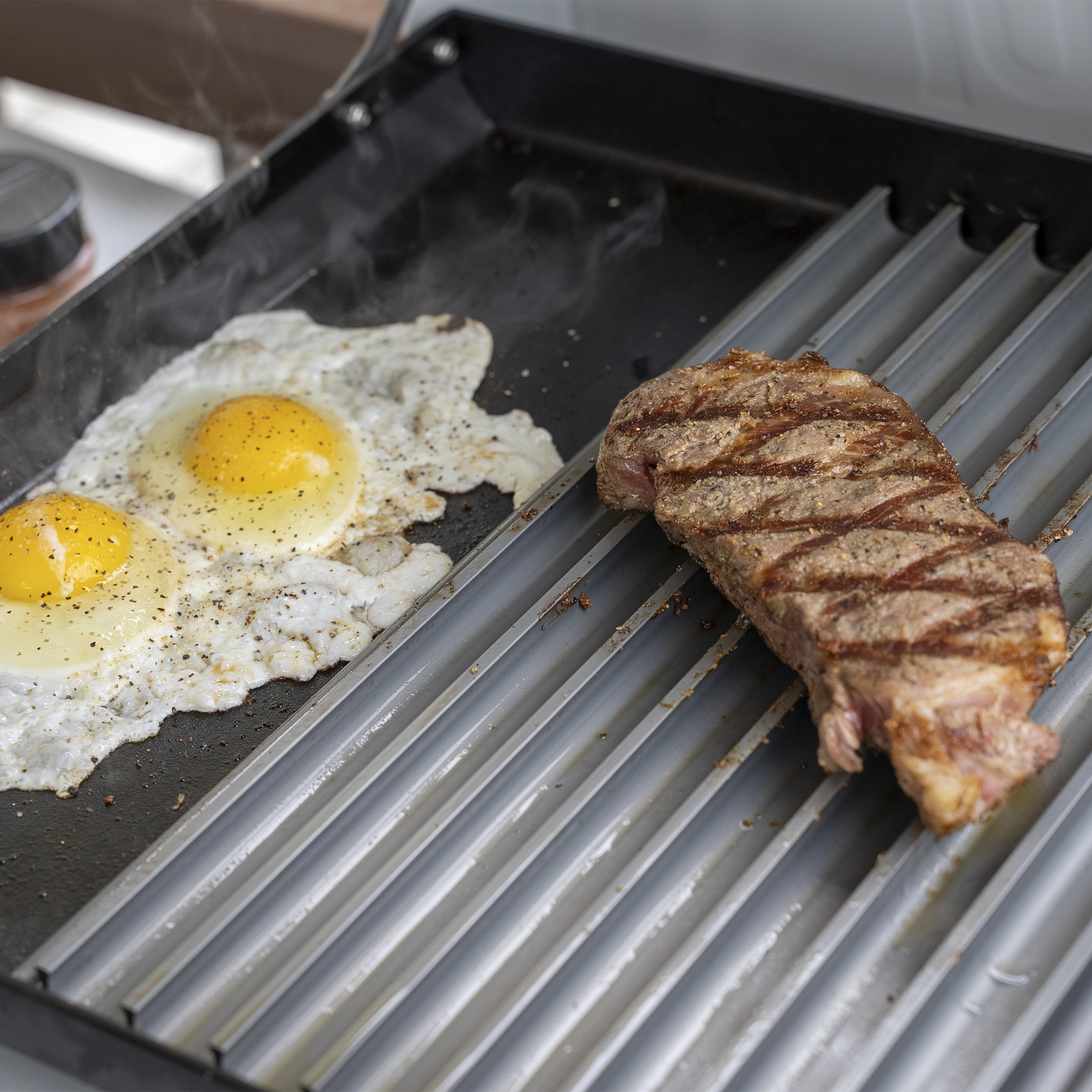 Enjoy your Weber Griddle even more with the Sear’NSizzle® GrillGrate. Convert a portion of your Loco to a grill. Sear great steaks, burgers, chicken, and more.  Now you can grill and griddle on your Weber!