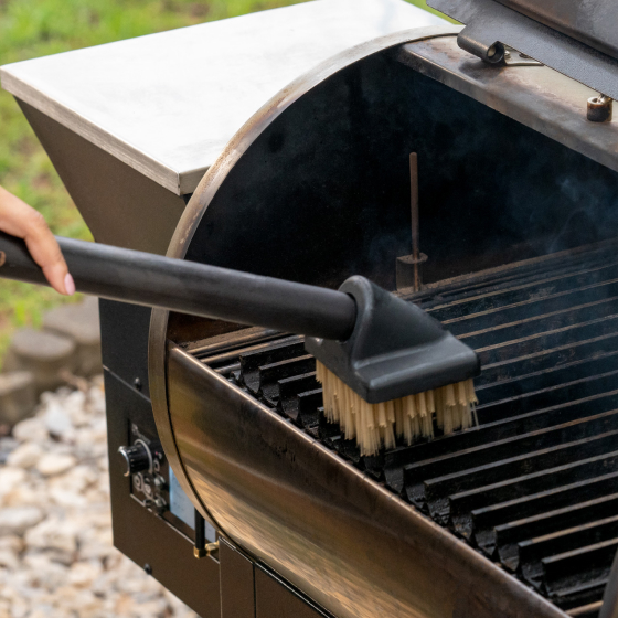High heat plastic bristle brush ideal for brushing grease and drippings out of the valleys and for cleaning GrillGrates off of the grill.