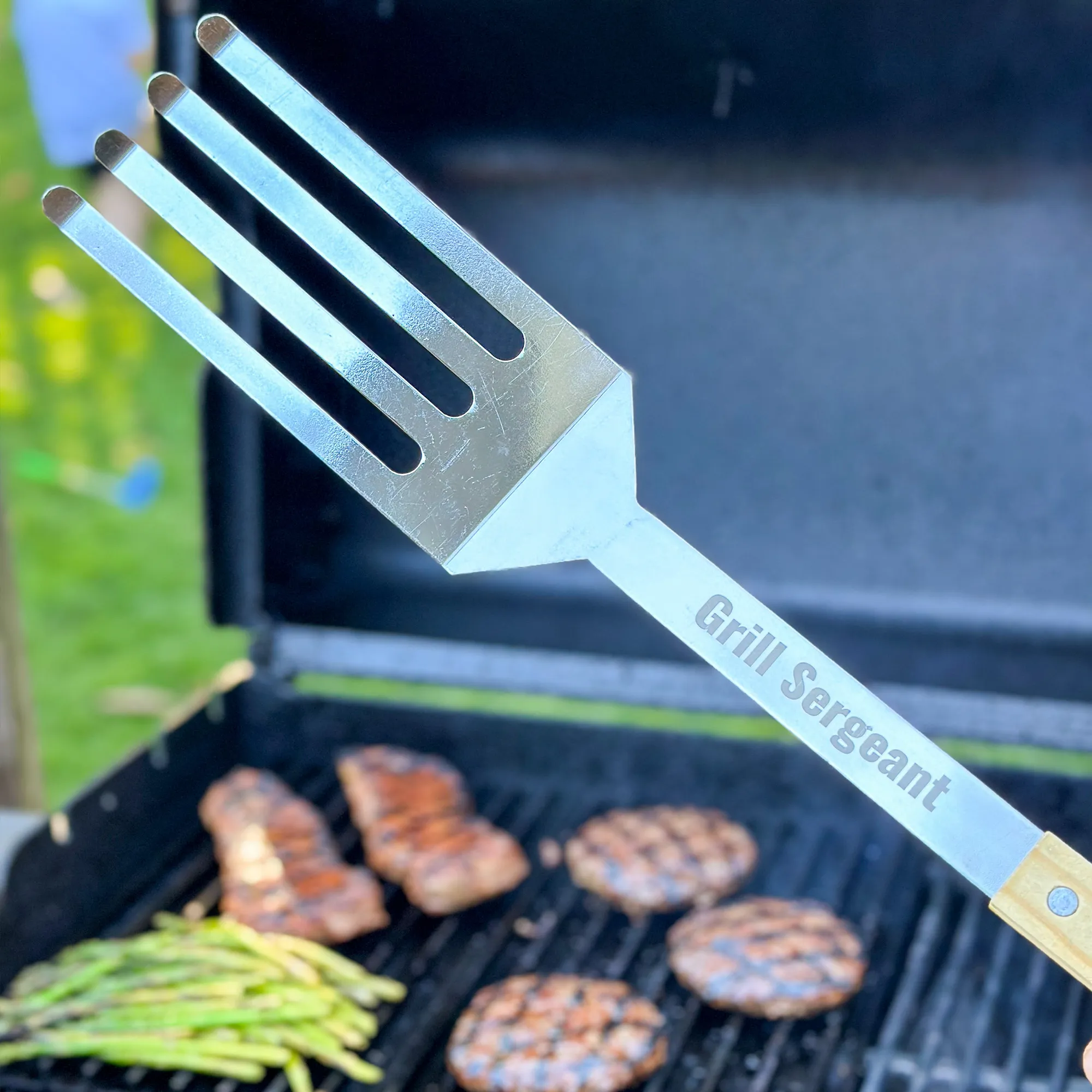 Part fork, part spatula, Dad will have everything he needs right at his fingertips. Lift don’t, don’t scrape with ease.