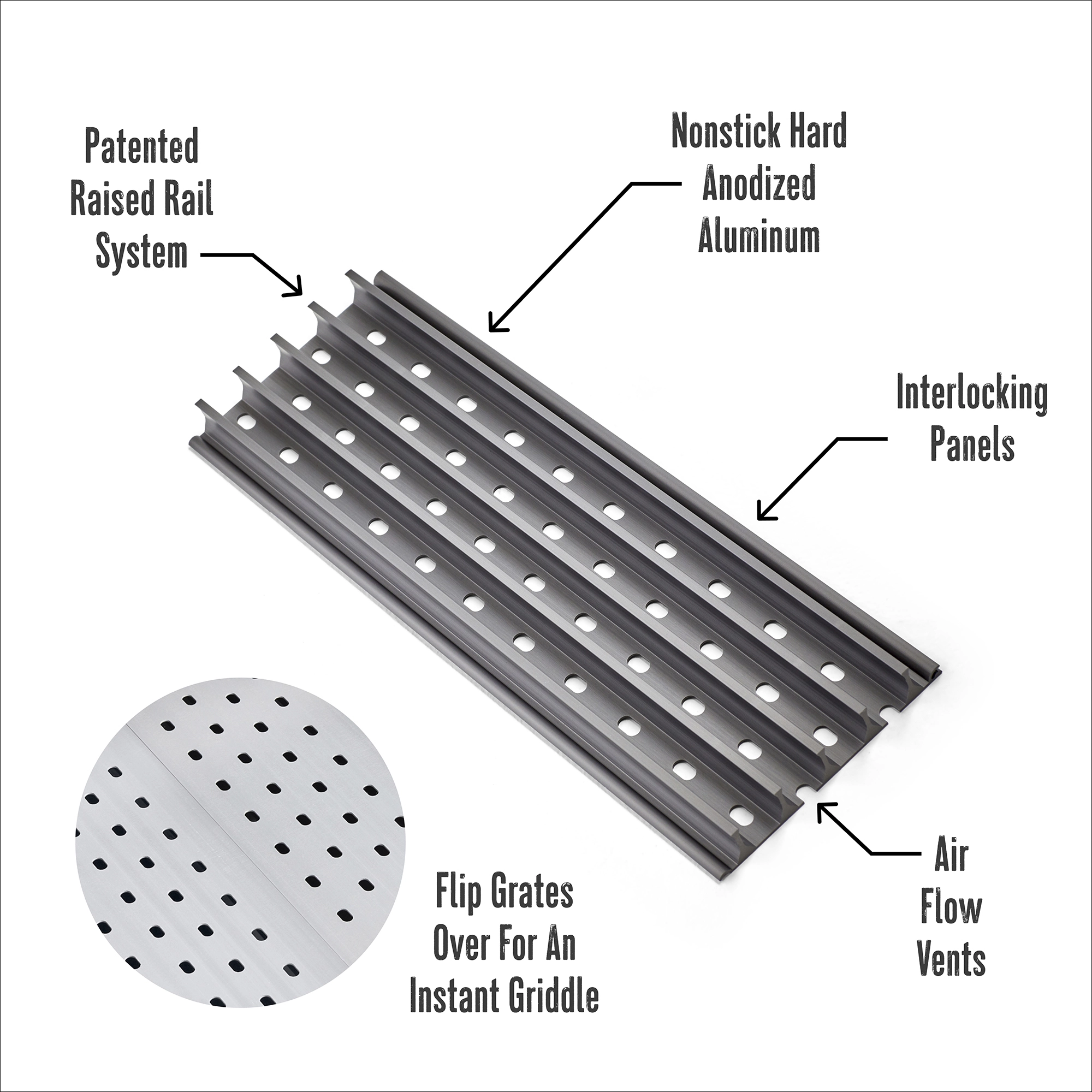 GrillGrates are made of hard anodized aluminum, so they never rust. Want more coverage? Flavor Zone panels interlock with each other to create a consistent grilling surface. Grilling with GrillGrates is easy, fun, and stress-free – every time!
