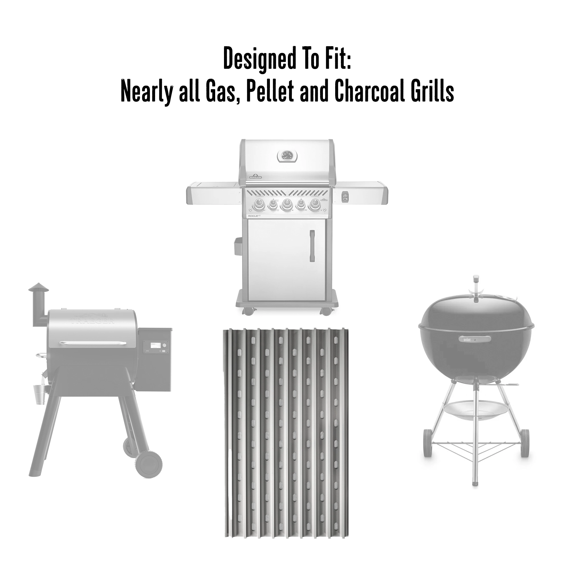 The GrillGrate Flavor Zone is the best grilling accessory for any gas, pellet or charcoal grill. Practically universal, this grate fits any grill at least 15” deep. Just place it on top of your existing grates, let it preheat for 5 minutes, and you’re ready to grill the best food of your life!