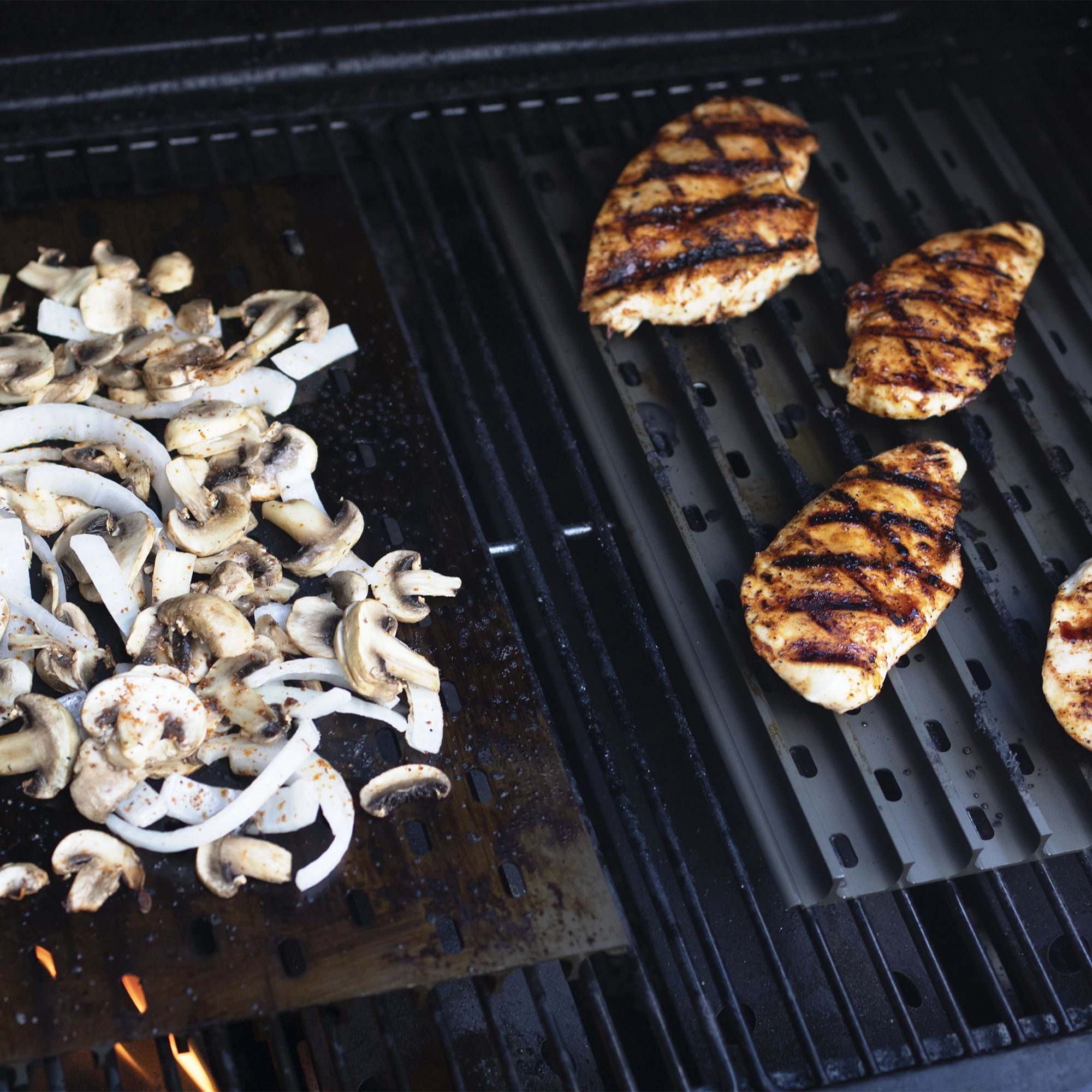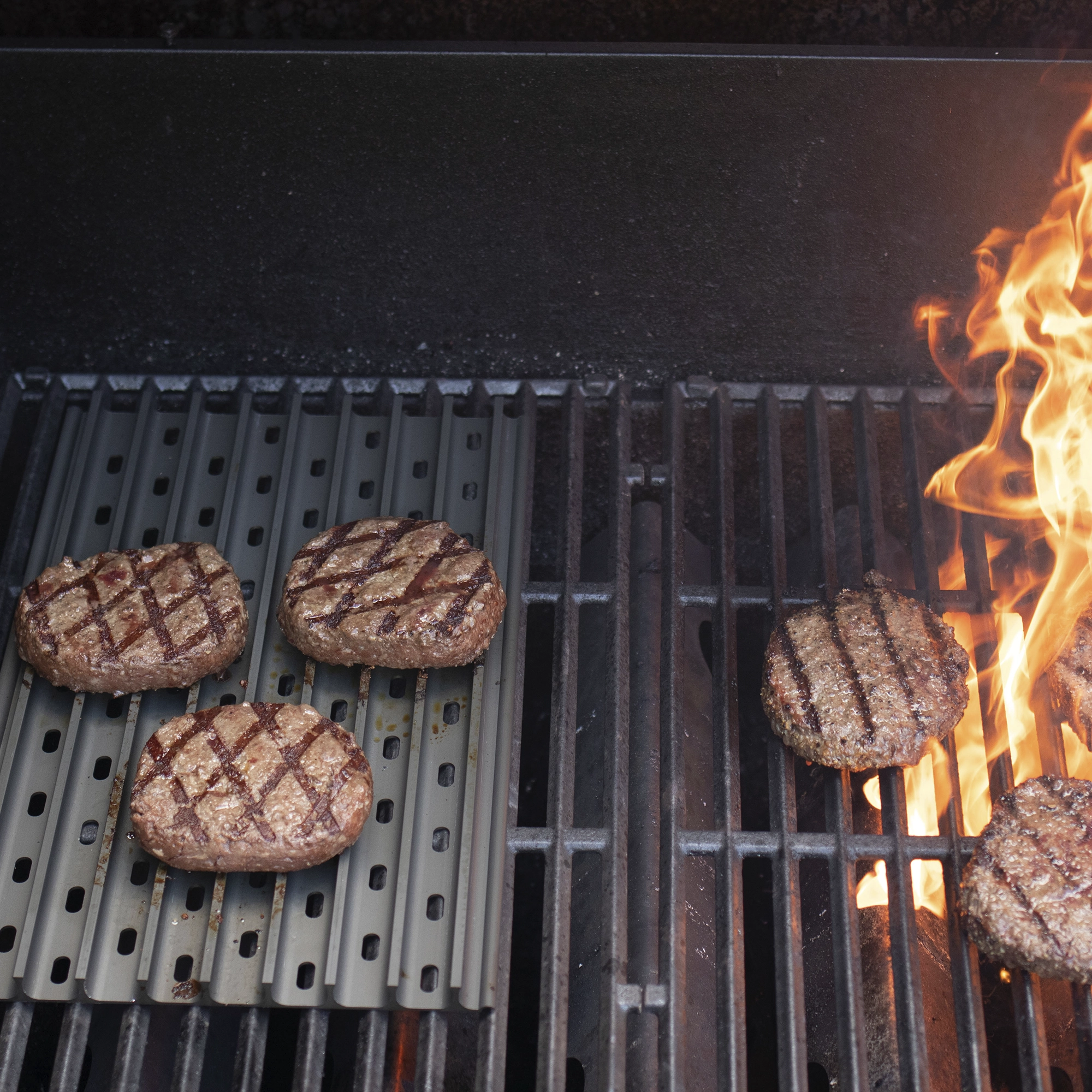 GrillGrates can be configured to your needs. Create independent heat zones by separating the grates. Even flip over for an instant griddle!