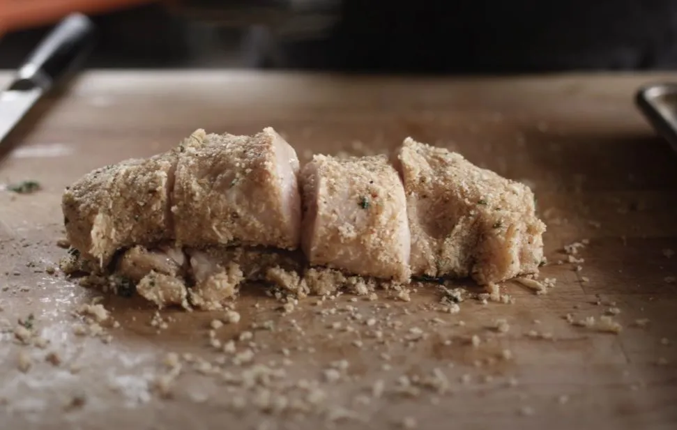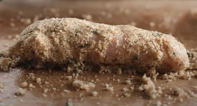 Remove the chicken from the marinade. Dredge in the breadcrumb mixture.