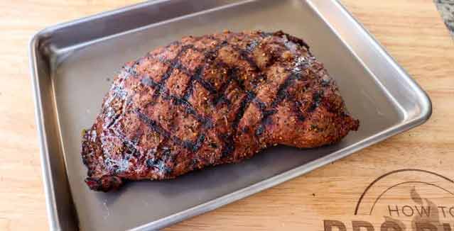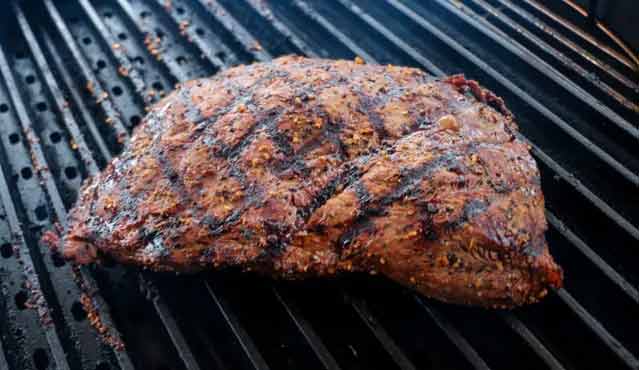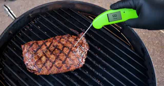 Place the steak on the grill and cook for 5 minutes. rotate the steak after 2.5 minutes to create grill marks. Repeat the same step for the opposite side for a total cook time of 10 minutes or until the steak reaches 125 internal temperature – medium-rare.