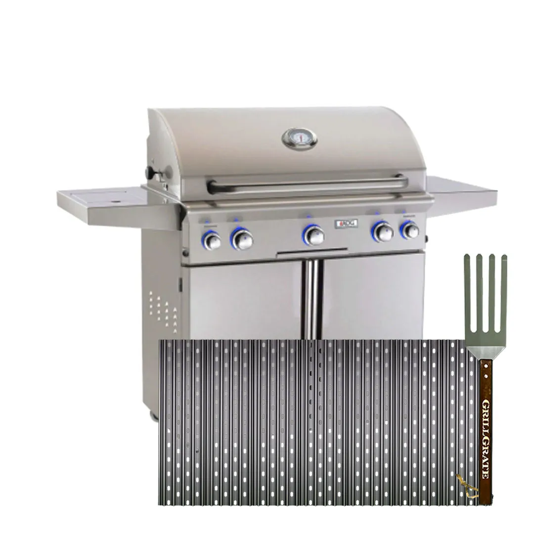 GrillGrates are a must-have accessory for your AOG gas grill. Whether you sit them on top of your current grates, or use them to replace your factory grates, GrillGrates will make your old gas grill better than new. Made of hard anodized aluminum, they never rust. GrillGrates are reversible, interlocking panels, giving you two grill surfaces in one. Even out those hot and cold spots with GrillGrates and produce juicier, more flavorful food. *GrillGrate is not affiliated with American Outdoor Grill.