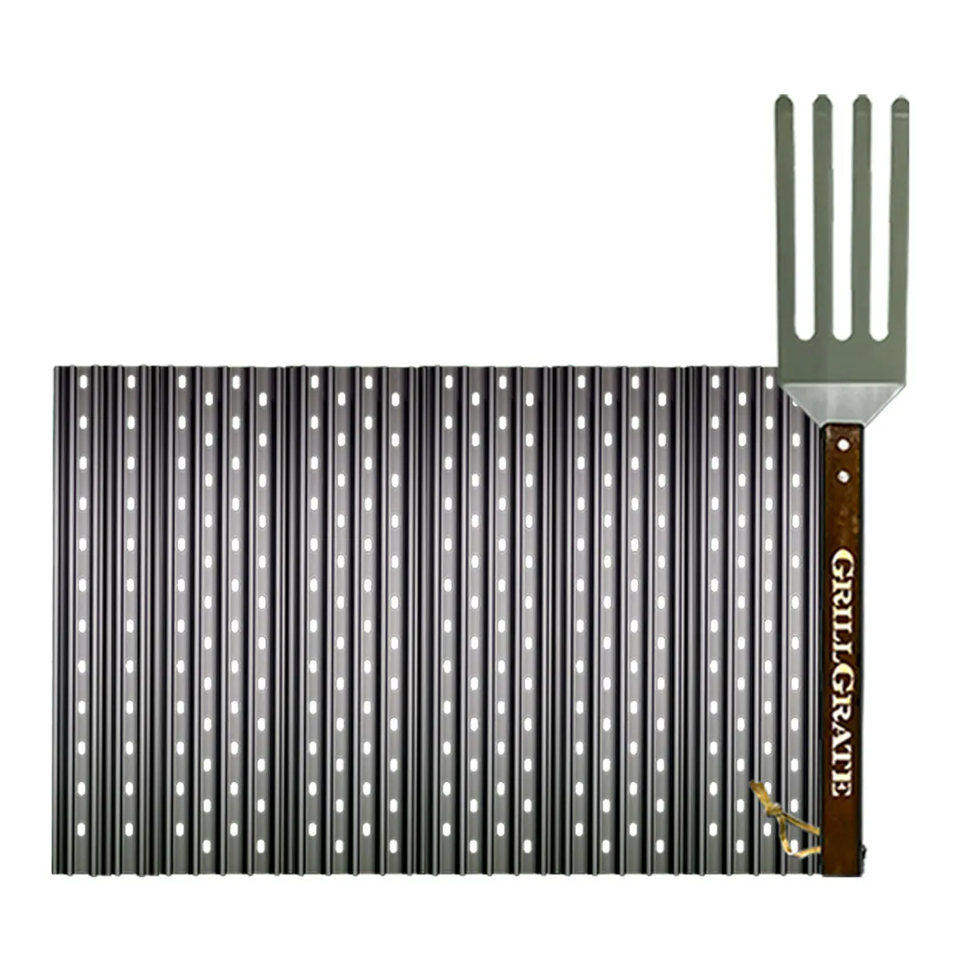 GrillGrates are a must-have accessory for your Bull gas grill. Whether you sit them on top of your current grates, or use them to replace your factory grates, GrillGrates will make your old gas grill better than new. Made of hard anodized aluminum, they never rust. GrillGrates are reversible, interlocking panels, giving you two grill surfaces in one. Even out those hot and cold spots with GrillGrates and produce juicier, more flavorful food. *GrillGrate is not affiliated with Bull Outdoor Products.