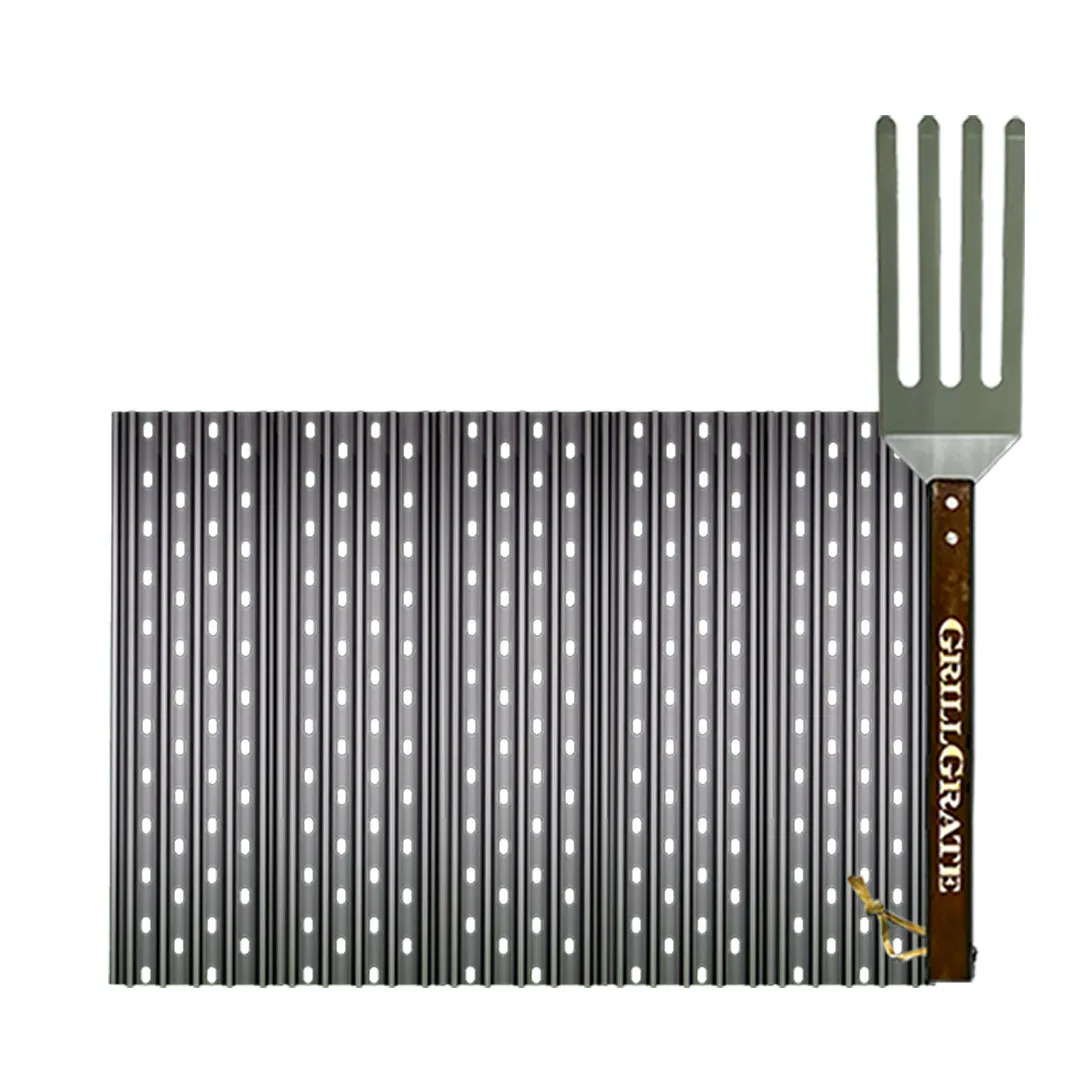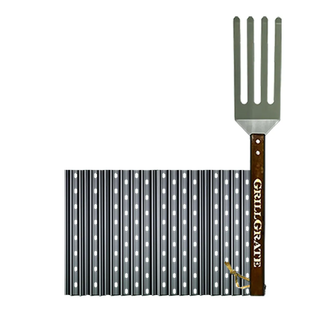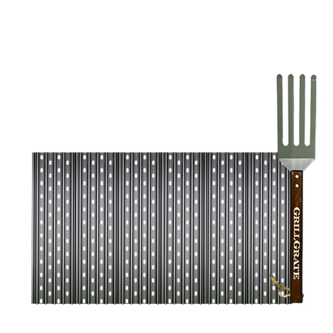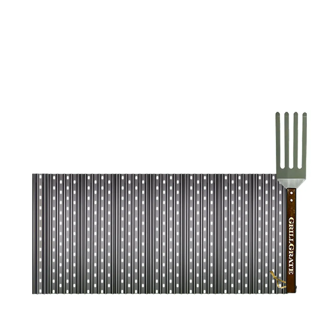 GrillGrates are a must-have accessory for your Solaire gas grill. Whether you sit them on top of your current grates, or use them to replace your factory grates, GrillGrates will make your old gas grill better than new. Made of hard anodized aluminum, they never rust. GrillGrates are reversible, interlocking panels, giving you two grill surfaces in one. Even out those hot and cold spots with GrillGrates and produce juicier, more flavorful food. *GrillGrate is not affiliated with Rasmussen Iron Works, Inc.