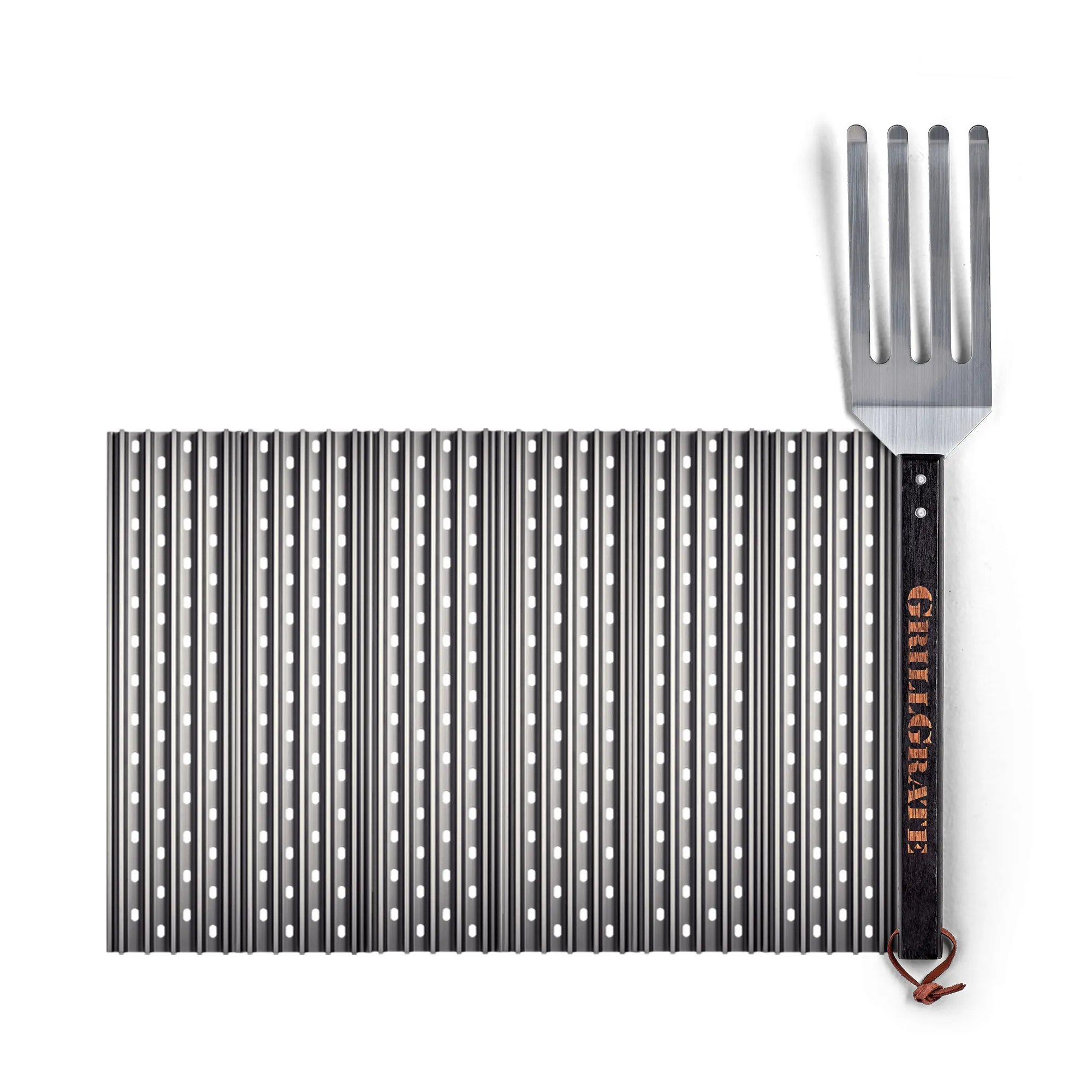 These reversible interlocking panels replace the existing grates on your gas grill, and immediately kick your cooking up a notch.